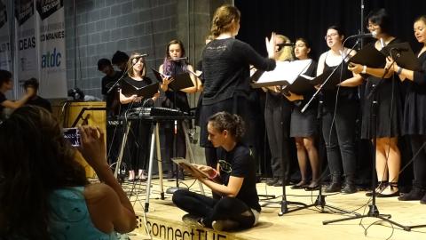 Immerse yourself in the universe of Mouvement and Music through music technology. Discover how we control music with gestures, control videos with sound features, and explore the intimate relationship between dance and music with us. Listen to performances from the Women's choir, music technology students, and a piece from our special guest composer, Dr Dorothy Hindman.