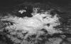 Pingos form when freezing water is forced up through cracks in the crust of the permafrost in the Arctic region of Earth. The subsurface water freezes, pushing up the ground to create a dome. The more water that reaches near the surface, the larger the ice-filled mountain will become — driven by pressure that forces the water to rise. As long as water can flow to the pingo, it will continue to push up the frozen plug, so many pingos continue to grow for hundreds to thousands of years. Pingos on Earth can range in height from ten to around 200 feet.