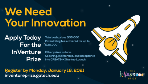 We invite you to apply for the 2021 InVenture Prize for the opportunity to compete for a total of over $35,000 in cash prizes, in addition to patent filing assistance of up to $20,000, mentorship, and much more! Each finalist will receive a cash award. First place finalists received an automatic entry in CREATE-X Startup Launch.