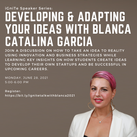 Join us on Monday, June 28 at 5 pm for this interactive talk with Blanca Catalina Garcia, ATDC and EI2, where she will discuss key steps in making your idea a reality when you think about creating your startups or working for a company. bit.ly/ignitetalkwithblanca2021