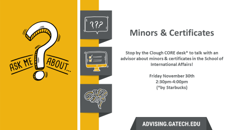 Speak with an advisor about minors and certificates and learn more about the school of International Affairs.