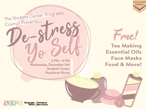 Cramming for finals wouldn’t be complete without essential oils, tea making, DIY stress balls, face masks, body scrubs, and of course FREE FOOD! This event’s got you covered this finals season!