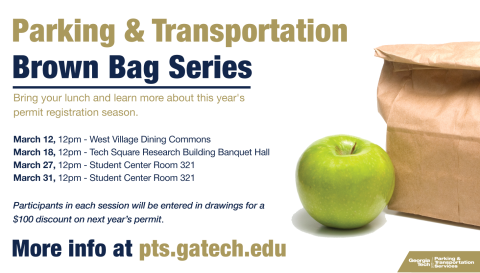 Bring your lunch to one of PTS’s Brown Bag Sessions to learn more about this year’s permit registration season and parking updates. Participants in each session will be entered in drawings for $100 discount on next year’s permit! Click here for rules.