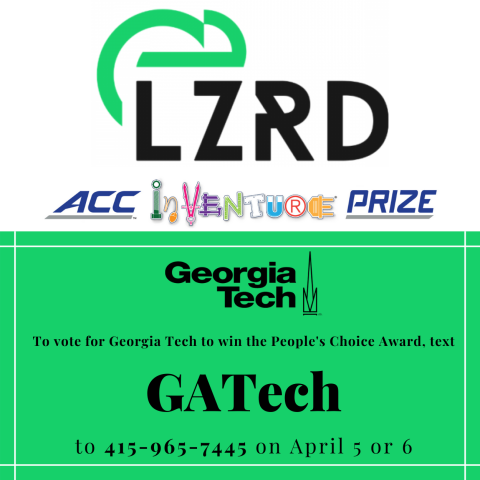 Vote for Georgia Tech to win the People's Choice Award of the ACC InVenture Prize by texting GATech to 415-965-7445 on April 5 or 6.