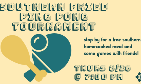 There is no better combination than that of fried chicken and ping pong! Join us at the BCM Thursday, August 26th, at 7:00pm for a ping pong tournament accompanied by southern fried chicken! There will be other games going on if ping pong is not your strong suit, so no worries! Bring your ping pong skills and appetite!